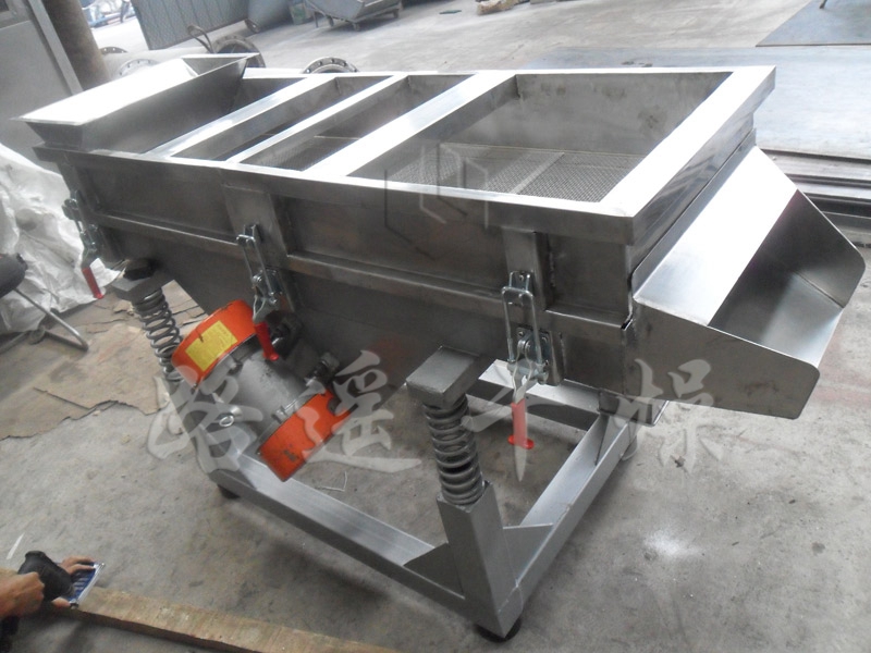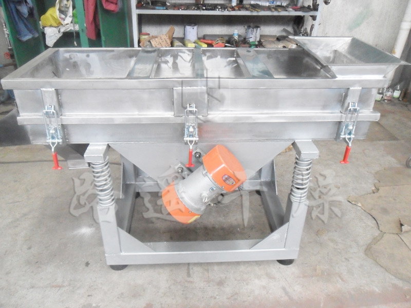 本機上部采用快拆式手柄,把整機連成一個整體,上蓋全密封、有效防止物料在過篩時由于振動而產生粉塵飛揚。篩體下部安裝振動電機,有效保證了物料的結構緊湊,下部采用彈簧減振,使整機在平穩(wěn)狀態(tài)下工作。下面底座采用可調式,可調節(jié)正在過篩時的篩面傾斜角度,根據物料特性以取得過篩效果。